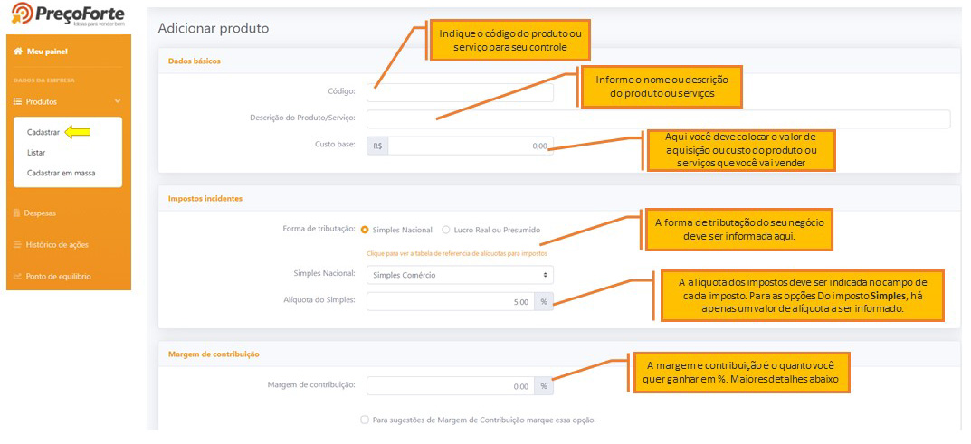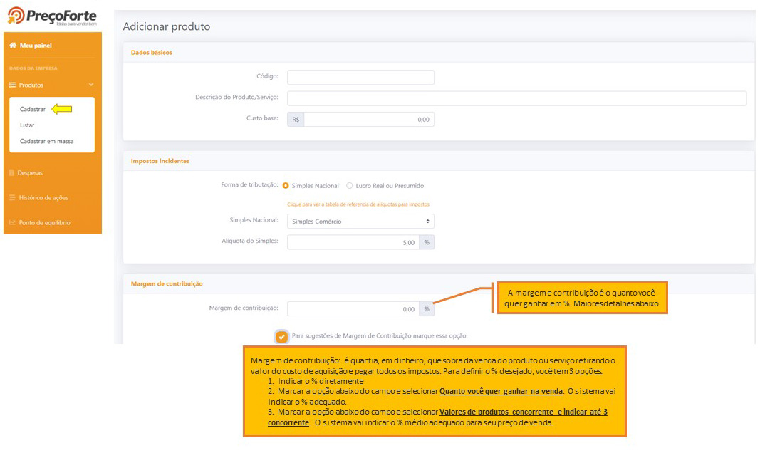 Ao cadastrar produtos, o Preço Forte calcula o preço correto que vai garantir o lucro desejado.